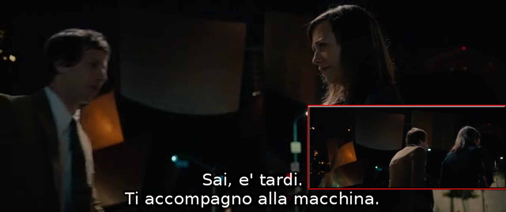 Suona il cellulare. Lei (Celeste): – Merda, è il lavoro. Abbassa il volume. Abbassa. Pronto? Jesse! Aspetta. Devo dare uno slogan al Los Angeles Time, quindi non fare rumore per un minuto.